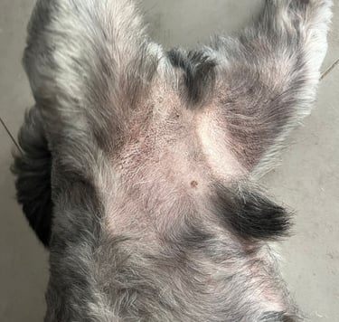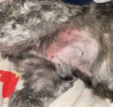 Íris é uma paciente canina com diagnóstico de intolerância alimentar múltipla, confirmada por teste sorológico de IgE específico. Anteriormente, foi submetida a protocolos terapêuticos convencionais, sem resposta clínica satisfatória.